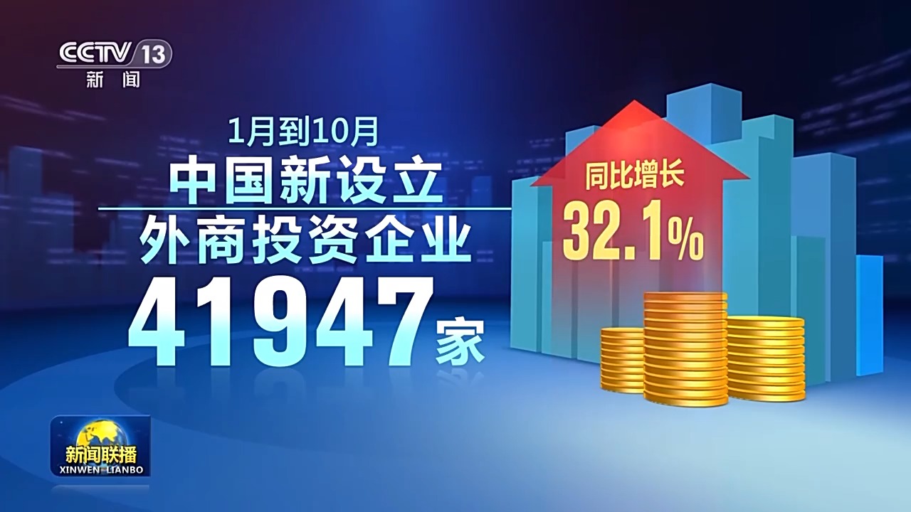 投資中國就是投資未來。在2023年,這成為越來越多跨國企業(yè)的共識。在全球跨國直接投資持續(xù)低迷的情況下,2023年我國實際使用外資仍然處于歷史高位,今年前十個月,中國新設(shè)立外商投資企業(yè)41947家,同比增長32.1%