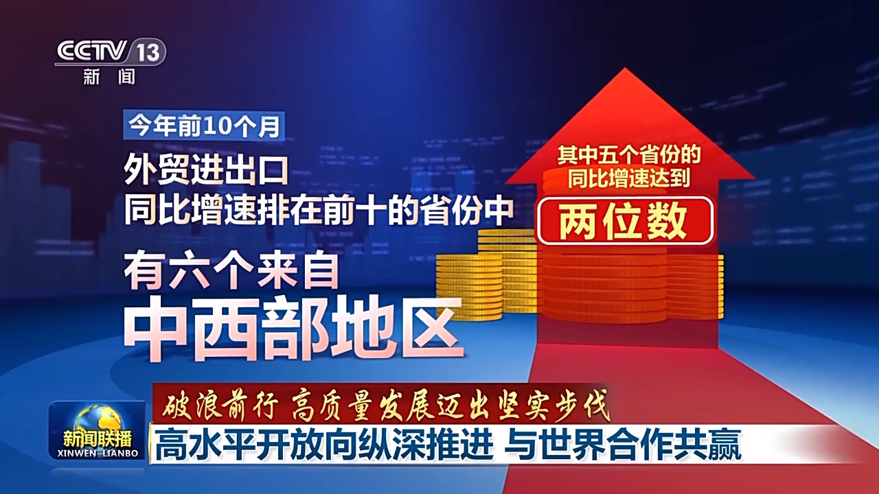 高水平開放,也讓曾經(jīng)的開放“末梢”變成“前沿”。最新數(shù)據(jù)顯示,今年前10個月,外貿(mào)進出口同比增速排在前十的省份中,有六個來自中西部地區(qū)。其中五個省份的同比增速達(dá)到兩位數(shù)。