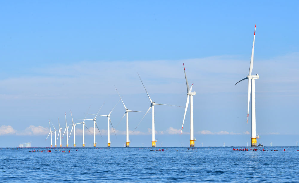 2023年9月13日拍攝的遼寧大連莊河海上風(fēng)電項目。新華社記者 楊青 攝