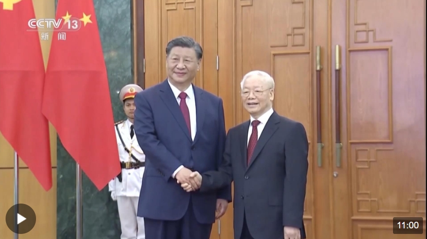 當(dāng)?shù)貢r間12月12日下午,剛剛抵達河內(nèi)的中共中央總書記、國家主席習(xí)近平在越共中央駐地同越共中央總書記阮富仲舉行會談。雙方宣布中越兩黨兩國關(guān)系新定位,在深化中越全面戰(zhàn)略合作伙伴關(guān)系基礎(chǔ)上,攜手構(gòu)建具有戰(zhàn)略意義的中越命運共同體。