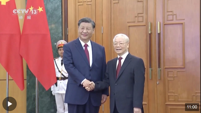 當?shù)貢r間12月12日下午,剛剛抵達河內(nèi)的中共中央總書記、國家主席習近平在越共中央駐地同越共中央總書記阮富仲舉行會談。雙方宣布中越兩黨兩國關(guān)系新定位,在深化中越全面戰(zhàn)略合作伙伴關(guān)系基礎上,攜手構(gòu)建具有戰(zhàn)略意義的中越命運共同體。