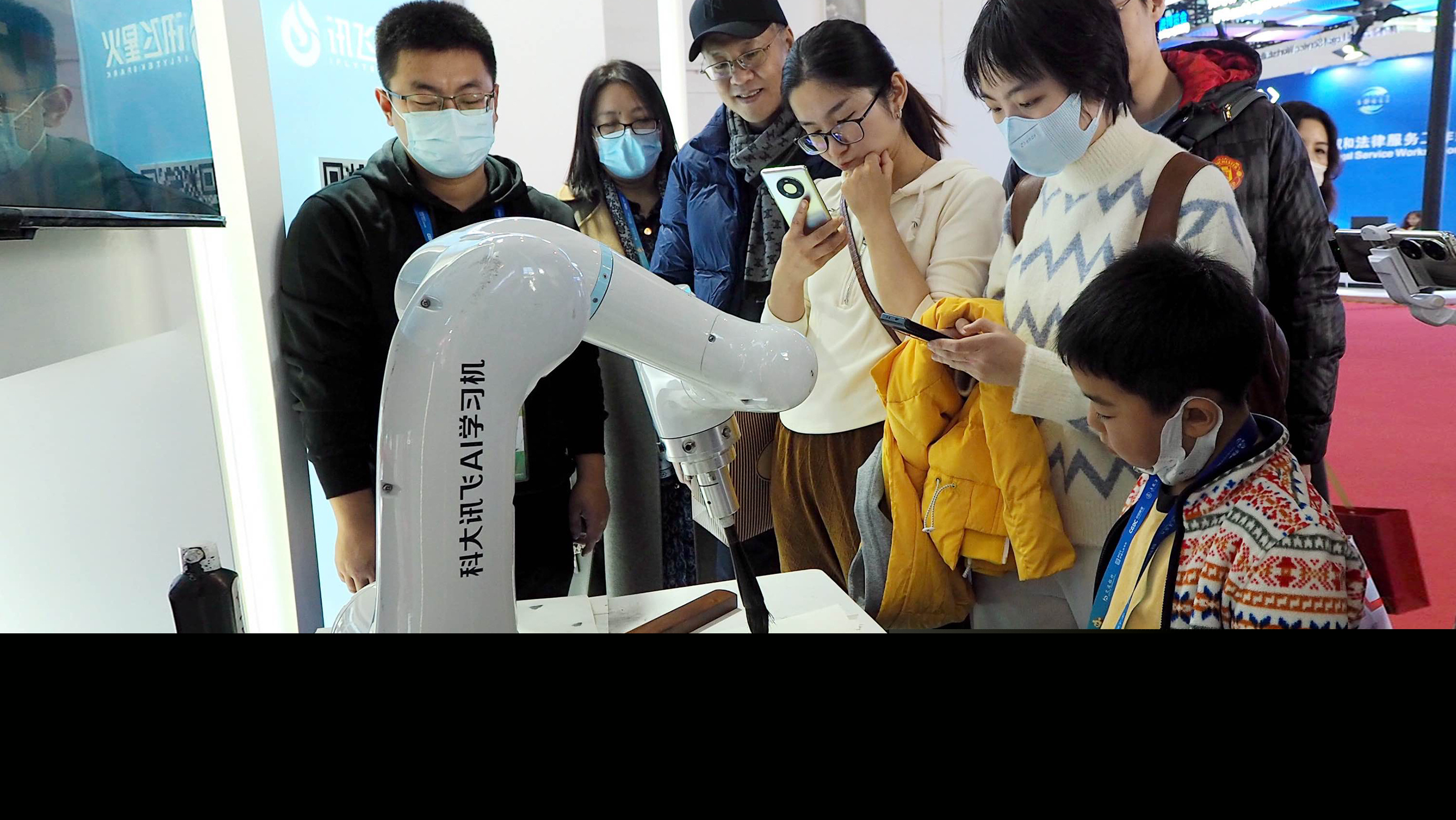 △觀眾在首屆鏈博會(huì)上體驗(yàn)AI書法機(jī)器人。(圖/視覺(jué)中國(guó))