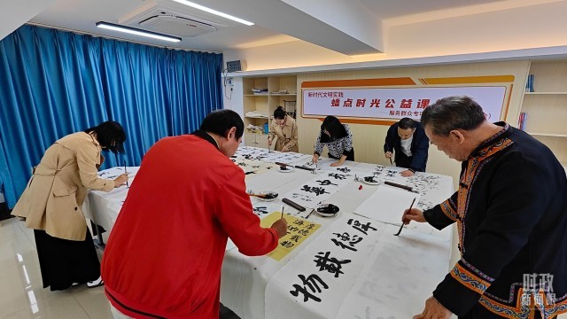△蟠龍社區(qū)居民在練習(xí)書法。(總臺央視記者楊立峰拍攝)