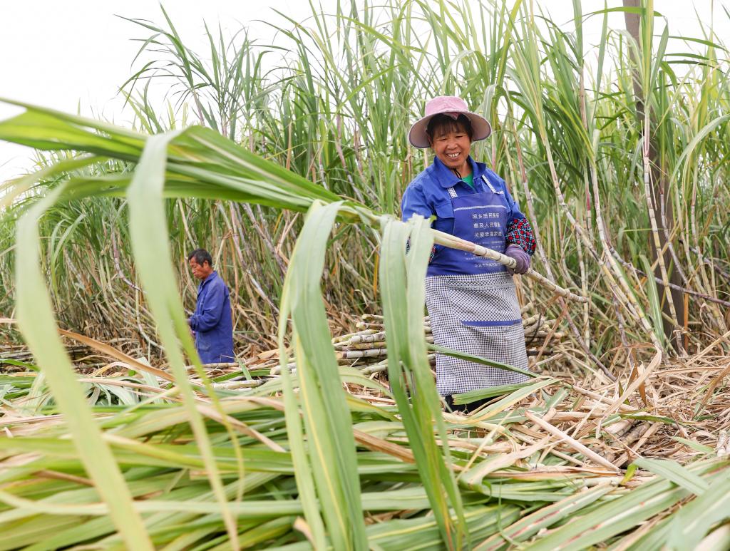 近日,在廣西來賓市興賓區(qū),蔗農正在砍收甘蔗。新華社記者 胡星宇 攝
