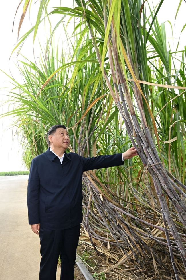 12月14日下午,習(xí)近平總書(shū)記在廣西來(lái)賓市考察調(diào)研。他先后來(lái)到來(lái)賓市國(guó)家現(xiàn)代農(nóng)業(yè)產(chǎn)業(yè)園黃安優(yōu)質(zhì)“雙高”糖料蔗基地和東糖鳳凰有限公司,了解甘蔗良種繁育、種植收成、糖產(chǎn)業(yè)發(fā)展等情況。