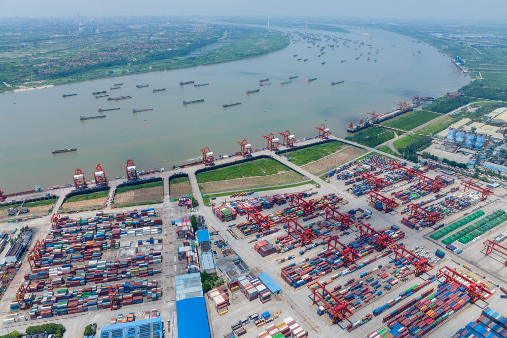 武漢陽(yáng)邏港一期碼頭(2023年7月5日攝,無人機(jī)照片)。新華社記者 伍志尊 攝