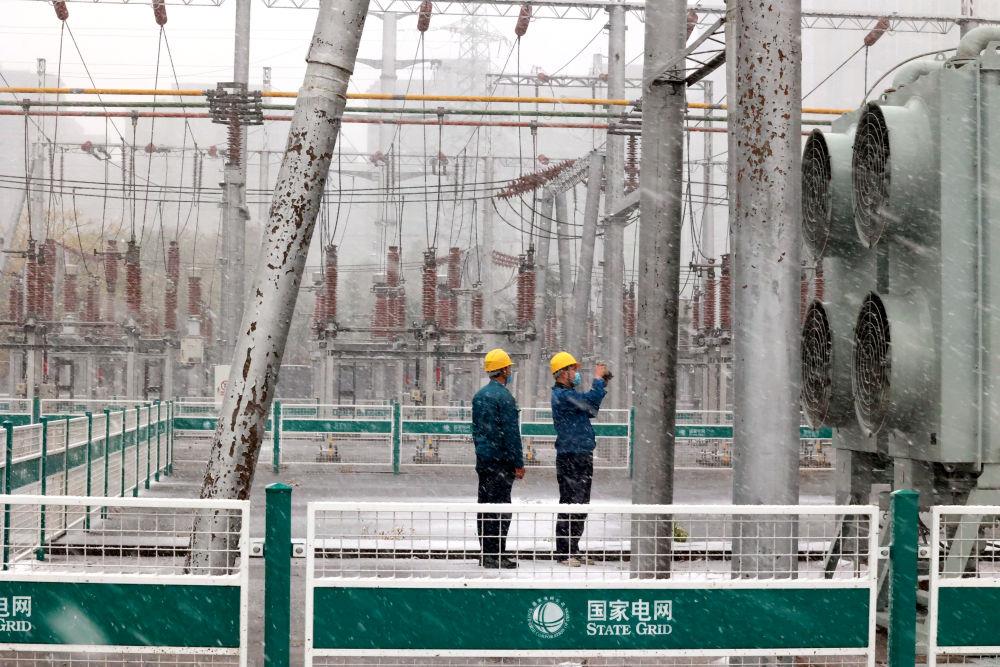 △國網(wǎng)壽光市供電公司變電運(yùn)維人員在檢查變電站積雪情況。