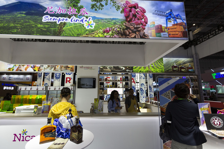 2023年11月6日在第六屆進(jìn)博會(huì)國(guó)家展拍攝的尼加拉瓜展臺(tái)。