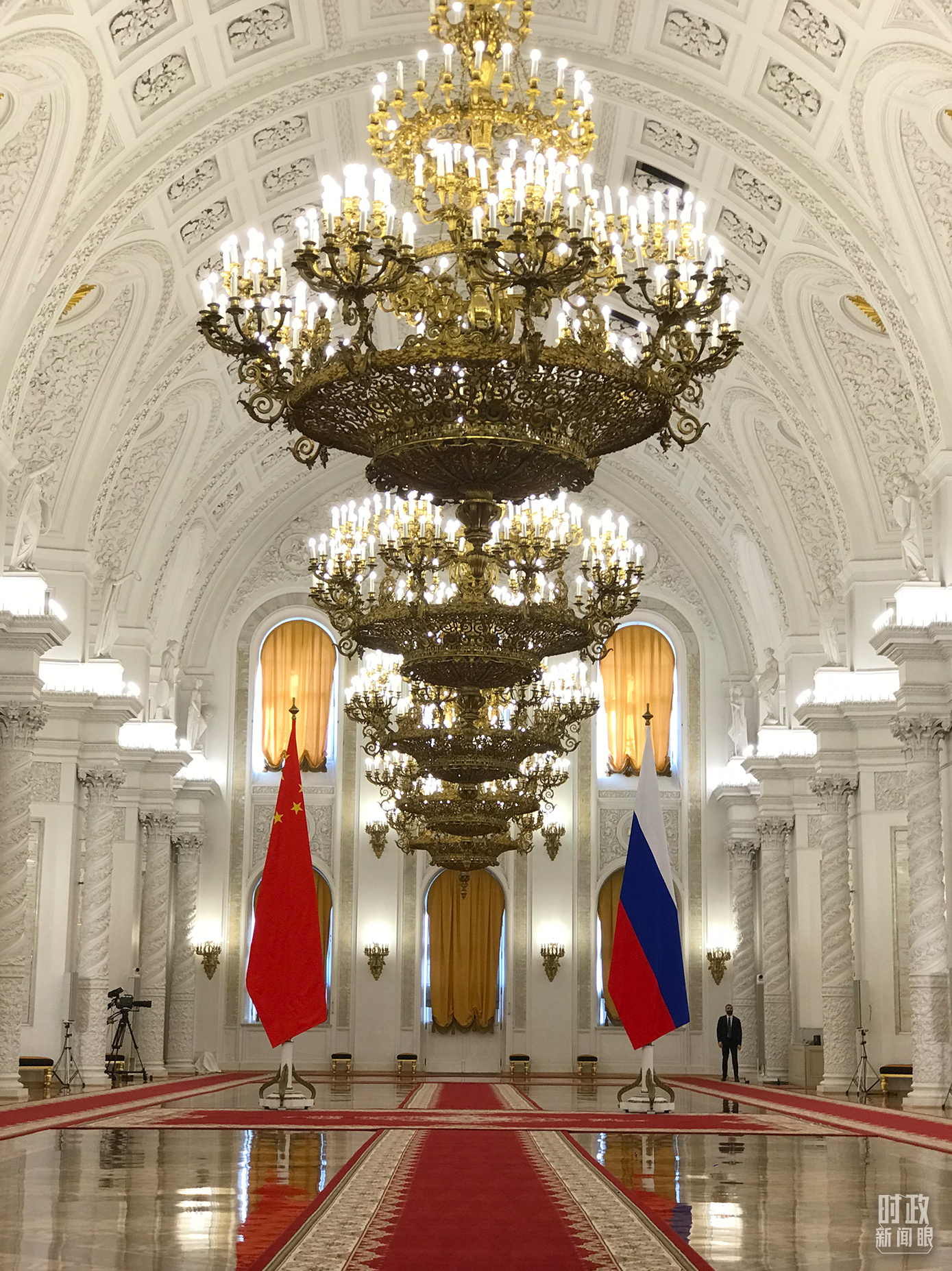 △ 2023年3月,應(yīng)俄羅斯總統(tǒng)普京邀請,習(xí)近平主席對俄羅斯進(jìn)行國事訪問。圖為克里姆林宮喬治大廳,習(xí)主席在這里同普京總統(tǒng)握手合影。(總臺央視記者石偉明拍攝)
