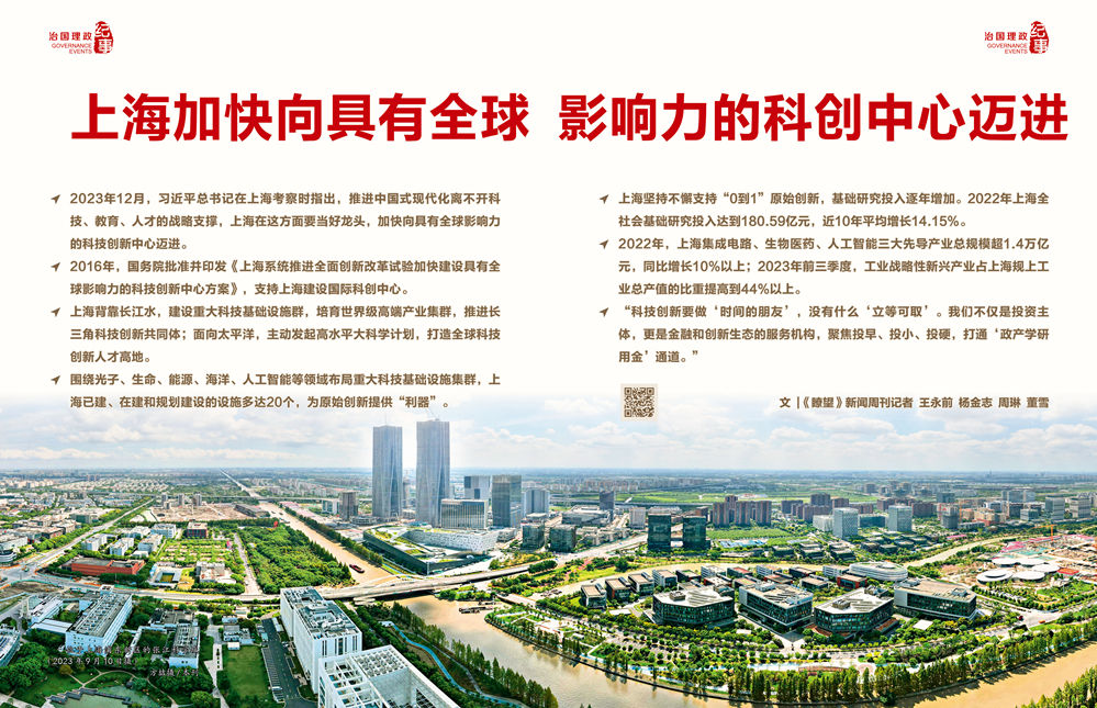 ◇2023年12月,習近平總書記在上海考察時指出,推進中國式現(xiàn)代化離不開科技、教育、人才的戰(zhàn)略支撐,上海在這方面要當好龍頭,加快向具有全球影響力的科技創(chuàng)新中心邁進。