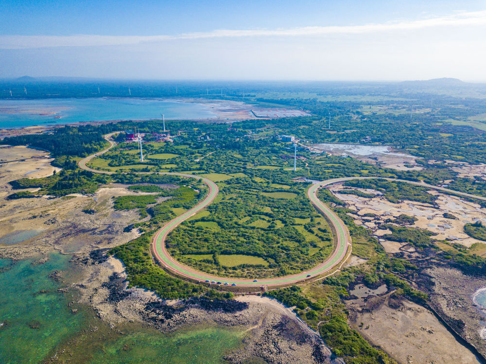 海南環(huán)島旅游公路儋州段景色(無(wú)人機(jī)照片,2023年11月26日攝)。新華社記者蒲曉旭 攝