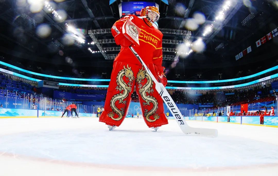 △北京冬奧會(huì)上,女子冰球門將周嘉鷹穿著中國龍護(hù)具。