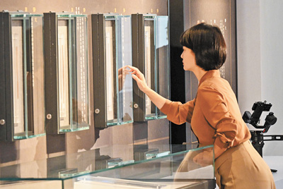 甘肅簡牘博物館的工作人員在文物庫房內(nèi)查看簡牘保存情況。