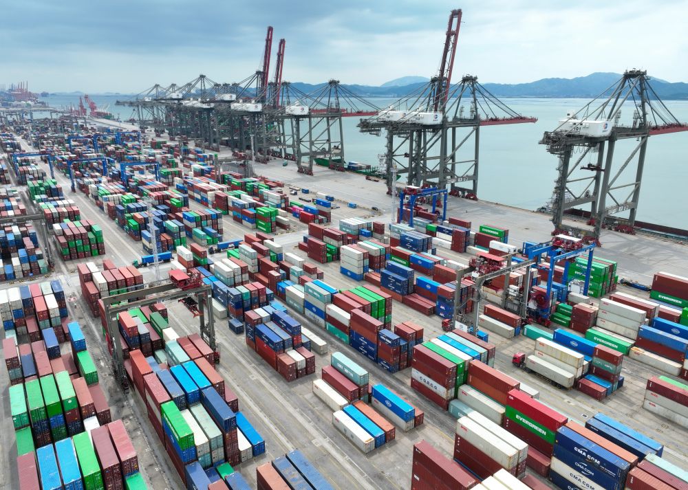 這是2024年10月15日拍攝的中國(guó)(福建)自由貿(mào)易試驗(yàn)區(qū)廈門片區(qū)集裝箱碼頭(無人機(jī)照片)。新華社記者 姜克紅 攝
