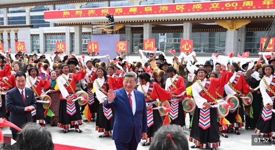 習(xí)近平離開西藏時,各族群眾紛紛來到拉薩市區(qū)的沿途道路兩旁,揮舞紅旗、手捧哈達,歡呼著向總書記問好,向總書記表達由衷的愛戴。拉薩貢嘎機場,身著節(jié)日盛裝的干部群眾揮舞著紅旗和花束,載歌載舞,高喊“扎西德勒”,表達高原兒女對以習(xí)近平同志為核心的黨中央的感激之情、對建設(shè)社會主義現(xiàn)代化新西藏的堅定信心。
