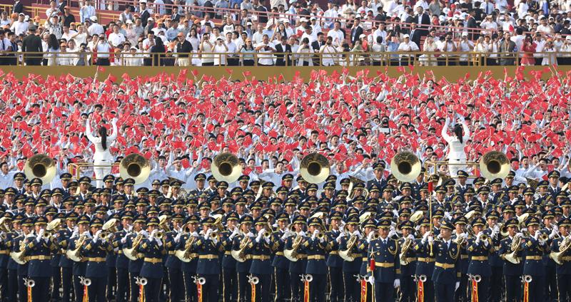 △2025年9月3日,紀(jì)念中國人民抗日戰(zhàn)爭暨世界反法西斯戰(zhàn)爭勝利80周年大會在北京隆重舉行。這是中國人民解放軍聯(lián)合軍樂團和合唱團。