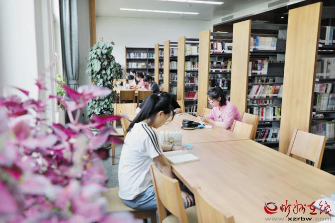 7月15日,原平市圖書館里,青少年正在閱讀書籍??崾顏砼R,圖書館成了學(xué)子增長知識(shí)、消暑納涼的好去處。褚 震 攝