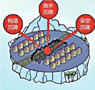 地面沉降是自然因素和人為因素綜合作用下形成的地面標高損失。自然因素包括構造下沉、地震、火山活動、氣候變化、地應力變化及土體自然固結等。人為因素主要包括開發(fā)利用地下流體資源(地下水、石油、天然氣等)、開采固體礦產、巖溶塌陷、軟土地區(qū)與工程建設有關的固結沉降等。