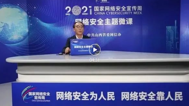 為深入宣傳貫徹習(xí)近平總書記關(guān)于網(wǎng)絡(luò)強(qiáng)國(guó)的重要思想,深入宣傳貫徹習(xí)近平總書記對(duì)網(wǎng)絡(luò)安全工作“四個(gè)堅(jiān)持”的重要指示,深入宣傳《中華人民共和國(guó)網(wǎng)絡(luò)安全法》和相關(guān)法律法規(guī),由山西省委網(wǎng)信辦主辦的2021國(guó)家網(wǎng)絡(luò)安全宣傳周山西“網(wǎng)絡(luò)安全主題微課”活動(dòng)于10月11日開(kāi)始全網(wǎng)推送。