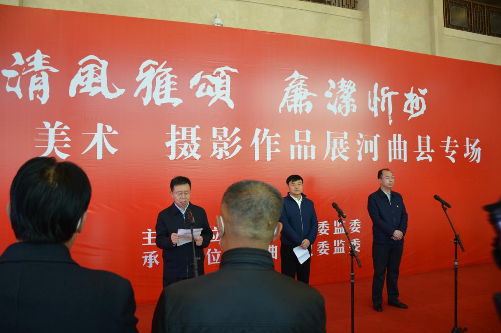 翰墨丹青揚(yáng)正氣,清風(fēng)廉韻沁民心。11月10日,由忻州市紀(jì)委監(jiān)委主辦,河曲縣紀(jì)委監(jiān)委承辦的“清風(fēng)雅頌·廉潔忻州”書畫美術(shù)攝影展河曲縣專場(chǎng),在臨隩公園美術(shù)館開展。市政協(xié)副主席、縣委書記邊東圣出席儀式并作重要講話,縣委副書記、縣長(zhǎng)任鴻賓宣布“清風(fēng)雅頌·廉潔忻州”書法美術(shù)攝影展開展,縣委常委、縣紀(jì)委書記、縣監(jiān)委主任張永明主持開展儀式??h四大班子領(lǐng)導(dǎo)和其他縣處級(jí)領(lǐng)導(dǎo),全縣各鄉(xiāng)鎮(zhèn)、居民辦、黨群、政府、發(fā)改、農(nóng)口、政法、宣傳文衛(wèi)各口黨員干部及全體紀(jì)檢監(jiān)察干部共計(jì)180余人參加了開展儀式。