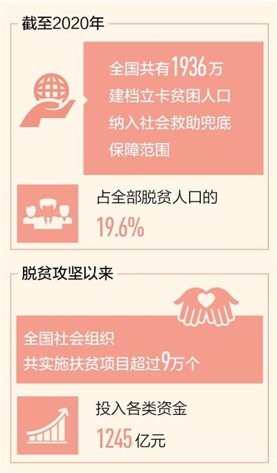 習(xí)近平總書記指出,民政工作關(guān)系民生、連著民心,是社會(huì)建設(shè)的兜底性、基礎(chǔ)性工作。決戰(zhàn)決勝脫貧攻堅(jiān),民政部門以完善制度機(jī)制、聚焦特殊群體、助力重點(diǎn)地區(qū)攻堅(jiān)等政策“組合拳”,兜住最困難群體,保住最基本生活。數(shù)據(jù)顯示,截至2020年,全國(guó)共有1936萬(wàn)建檔立卡貧困人口納入社會(huì)救助兜底保障范圍,占全部脫貧人口的19.6%,脫貧地區(qū)群眾獲得感、幸福感、安全感不斷提升。