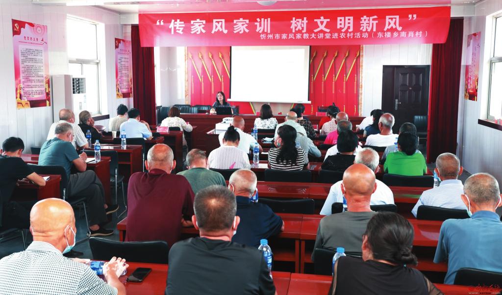 為大力弘揚優(yōu)良家風(fēng)家訓(xùn),推動家庭美德建設(shè),讓社會主義核心價值觀在家庭里生根、在親情中升華,近日,忻府區(qū)南肖村以“傳家風(fēng)家訓(xùn)、樹文明新風(fēng)”為主題的大講堂開講。( 張存良 攝)