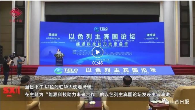 在高峰論壇發(fā)表主旨演講;與太原市市長共同種植友誼樹30棵并樹立紀念碑,寓意中以30年合作取得豐碩成果;出席以色列分論壇與能源產(chǎn)業(yè)B2B對接會......作為以色列駐華大使,潘綺瑞和她所代表的以色列“主賓國”之旅很是繁忙。