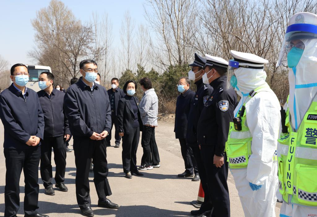 按照市委市政府的統一部署,4月3日,市委副書記、市長李建國,深入代縣、原平市、定襄縣的交通卡口、山林入口、尾礦庫壩和疫情應急準備場所等處,檢查疫情防控、森林防火、安全生產等重點工作落實情況。副市長崔崢嶺,市政府秘書長張艮生和市直相關部門負責人參加檢查。