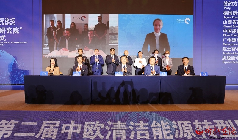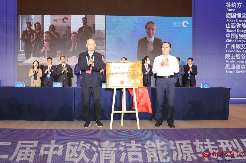 山西雙碳能源革命研究院由博眾能源轉(zhuǎn)型論壇、山西省能源研究會(huì)、中國(guó)能源建設(shè)集團(tuán)有限公司、廣州碳排放權(quán)交易所、院士智谷、思源碳中和科技(山西)有限公司六方協(xié)商,同意達(dá)成戰(zhàn)略合作伙伴關(guān)系,聯(lián)合支持山西雙碳能源革命研究院建設(shè),并以此為合作平臺(tái),合力推動(dòng)碳達(dá)峰碳中和、能源革命和產(chǎn)業(yè)科技創(chuàng)新發(fā)展。六方本著優(yōu)勢(shì)互補(bǔ)、互惠互利、深化合作、共同發(fā)展的原則,在戰(zhàn)略咨詢、科技合作成果轉(zhuǎn)換、人才引進(jìn)、共建科研基地等方面開(kāi)展全方位深層次長(zhǎng)期合作,力爭(zhēng)創(chuàng)建一流科學(xué)研究機(jī)構(gòu)和組織?,F(xiàn)場(chǎng)六方共同簽約合作備忘錄,名譽(yù)院長(zhǎng)宋振騏和省發(fā)改委二級(jí)巡視員霍喜福共同揭牌。