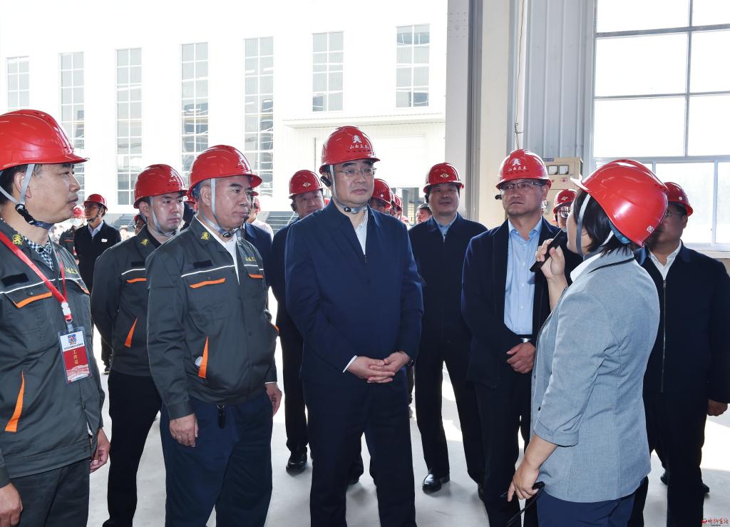 在山西眾立法蘭有限公司觀摩檢查新建鋁合金軋制-旋壓一體成型生產(chǎn)線項目建設(shè)情況。馮曉磊 攝