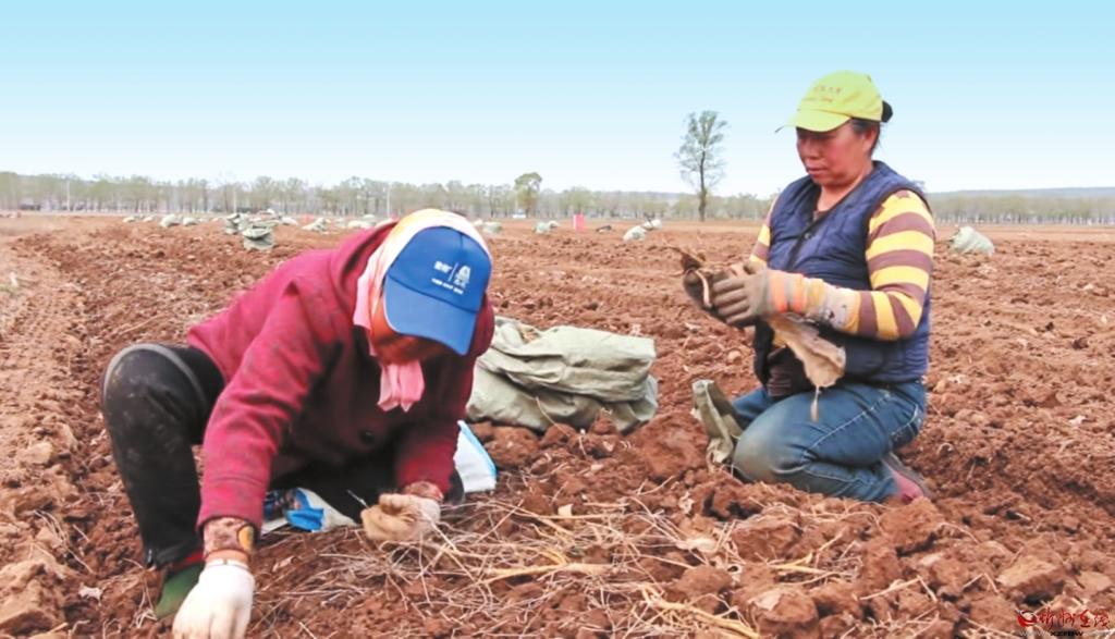 隨著機械的轟鳴聲響起,一根根健壯的黃芪苗破土而出,田間地頭彌漫著淡淡的藥香。藥農們分工明確,協(xié)同作戰(zhàn),有的精心撿拾,有的根據黃芪苗的粗細進行分揀和捆綁,共同勾勒出一幅生機勃勃的春景圖。