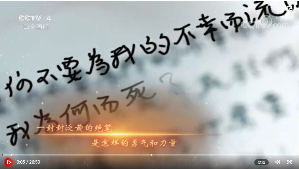 2022年清明之際,中央廣播電視總臺華語環(huán)球節(jié)目中心隆重推出六集專題紀錄片《絕筆》(第二季),解讀十四位共產黨員的絕筆,展現一批批革命先烈獻身中國革命、追求崇高信仰的犧牲精神。