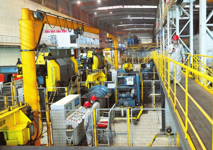 在環(huán)形爐控制室,俯瞰窗外火熱的生產(chǎn)現(xiàn)場,只見鋸切、加熱、預成型、成型、軋制、壓彎各工序井然有序,智能高效的生產(chǎn)場景令參觀者嘖嘖稱贊。