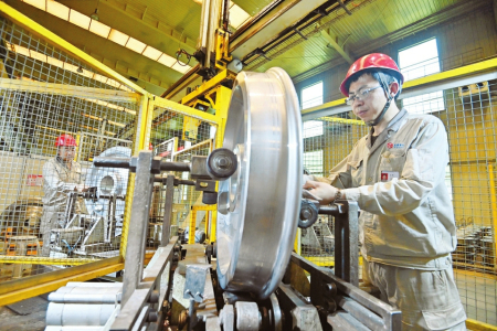 俯瞰窗外,流水線上一片片锃光瓦亮的車輪正快速產(chǎn)出,等待裝車發(fā)貨。控制室里,參觀者依然興趣盎然,仔細傾聽著、品味著“太重制造”自主創(chuàng)新的故事……