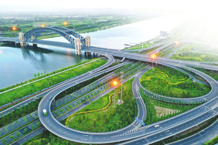 晉陽(yáng)橋,形如彩帶、態(tài)似彩虹,完美地詮釋了傳統(tǒng)與現(xiàn)代交融的設(shè)計(jì)理念,展現(xiàn)出莊重的對(duì)稱(chēng)式美。夕陽(yáng)西下,站在晉陽(yáng)橋段東岸“汾河晚渡”觀景平臺(tái)遠(yuǎn)眺西山,天際線、山脊線、水岸線層次分明,河面波光粼粼,畫(huà)舫古樸典雅,晉陽(yáng)橋雄偉絢麗,呈現(xiàn)出一幅河、舫、橋、山渾然一體的秀美畫(huà)卷。