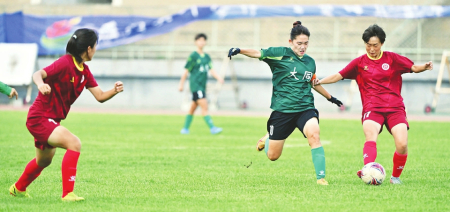 8月10日下午,第十六屆省運(yùn)會(huì)女子甲組足球比賽落下帷幕,太原、大同、晉中分獲前三名。第五輪場(chǎng)序大同隊(duì)與呂梁隊(duì)的比賽中,隨著裁判一聲哨響,比賽正式打響。雙方球員在場(chǎng)上奮力奔跑,拼搶防守,場(chǎng)下的觀眾為球員們加油吶喊,現(xiàn)場(chǎng)氣氛火熱。大同隊(duì)最終以3∶0戰(zhàn)勝對(duì)手,奪得第二名。