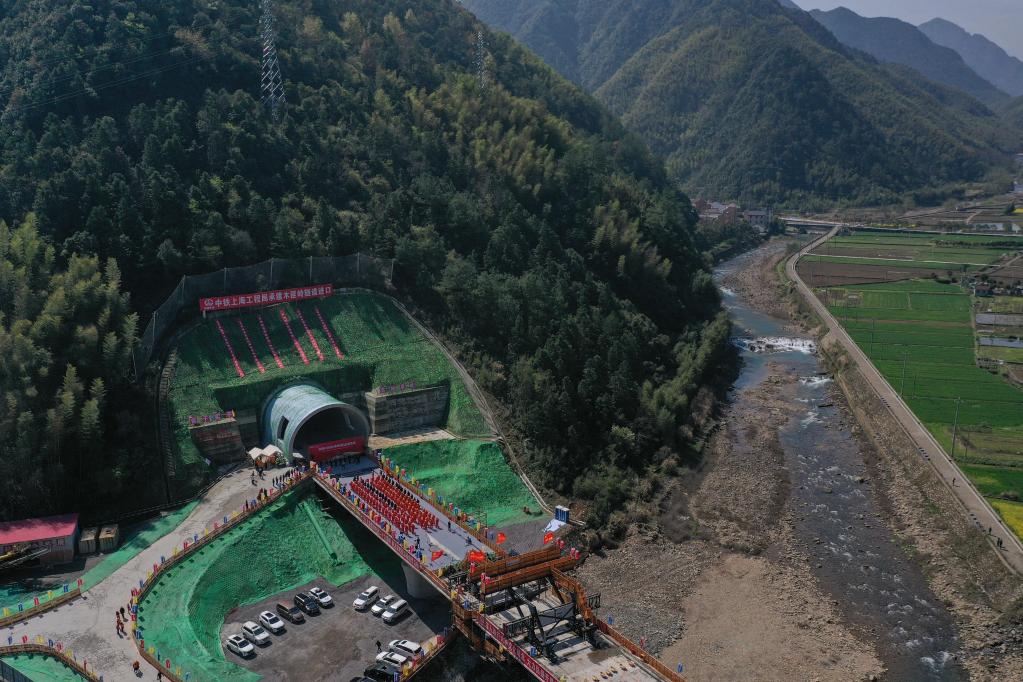 3月26日,杭溫鐵路二期項(xiàng)目最長(zhǎng)隧道——木匪嶺隧道順利貫通。新華社記者黃宗治 攝