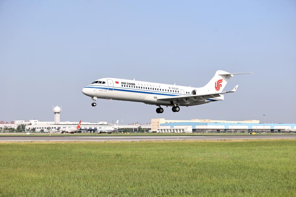 天津東疆以租賃形式交付的第2000架飛機(jī)降落在天津?yàn)I海國(guó)際機(jī)場(chǎng)。新華社記者 趙子碩 攝