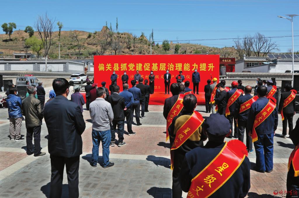 偏關縣為抓黨建促基層治理能力提升星級文明戶頒獎授牌。 郝文俊攝