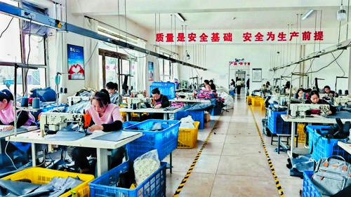 廣惠園社區(qū)幫扶車(chē)間,工人加工出口箱包。 趙文君攝