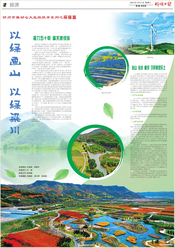 近年來,偏關(guān)縣新一屆黨委政府踐行習近平總書記“綠水青山就是金山銀山”發(fā)展理念,聚焦全方位推動高質(zhì)量發(fā)展戰(zhàn)略部署,樹牢綠色理念、扛起綠色使命,堅定不移走生態(tài)優(yōu)先、綠色發(fā)展之路,推動黃河流域生態(tài)保護和高質(zhì)量發(fā)展,加快推進山水林田湖草沙綜合治理,統(tǒng)籌推進減沙控沙、生態(tài)修復、水土保持、污染防治等工作。
