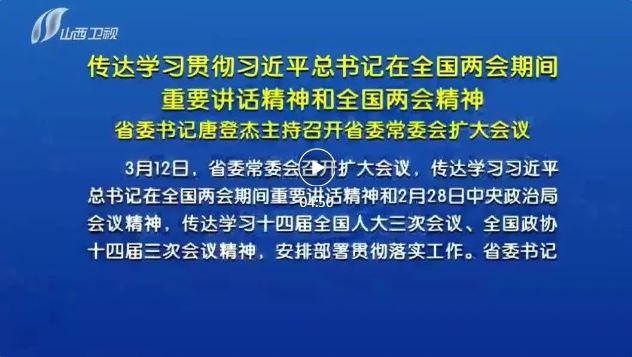 山西日報報道3月12日,省委常委會召開擴(kuò)大會議,傳達(dá)學(xué)習(xí)習(xí)近平總書記在全國兩會期間重要講話精神和2月28日中央政治局會議精神,傳達(dá)學(xué)習(xí)十四屆全國人大三次會議、全國政協(xié)十四屆三次會議精神,安排部署貫徹落實工作。省委書記唐登杰主持會議。