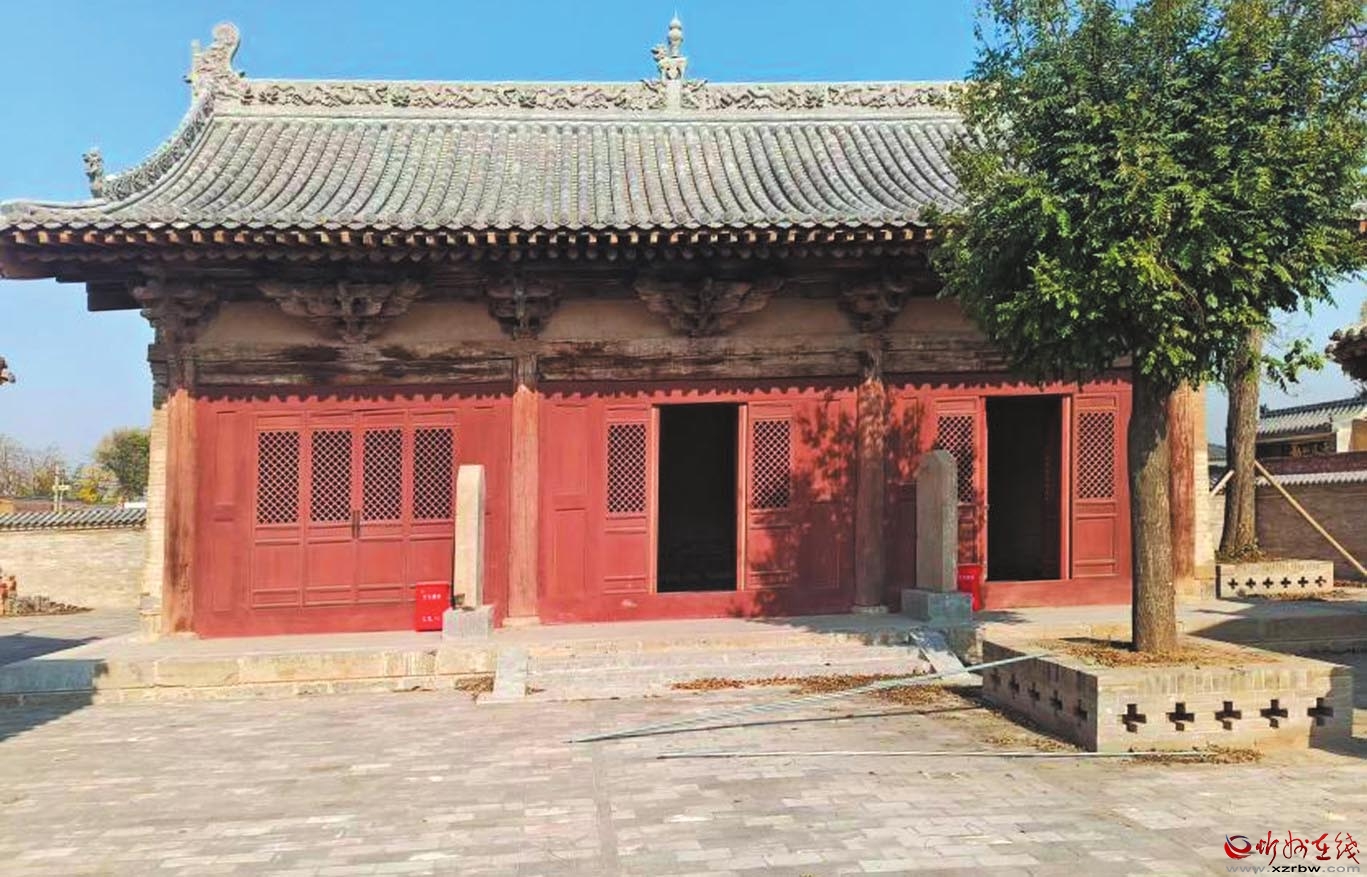 七峰寺位于忻府區(qū)董村鎮(zhèn)孫村村北,坐北向南。創(chuàng)建年代不詳,現(xiàn)存一進(jìn)院布局,中軸線上建筑依次為山門、過殿、大雄寶殿、東西配殿及東西側(cè)耳殿。除大雄寶殿為明代遺構(gòu)外,其余建筑均為清代遺構(gòu)。大雄寶殿面闊三間,進(jìn)深四椽,單檐懸山頂,五檁無(wú)廊式構(gòu)架,斗栱五踩雙昂,平身科施45°斜栱。過殿面闊三間,進(jìn)深四椽,單檐懸山頂。東西配殿形制同過殿。東西側(cè)耳殿均為單體建筑,單檐懸山頂。
