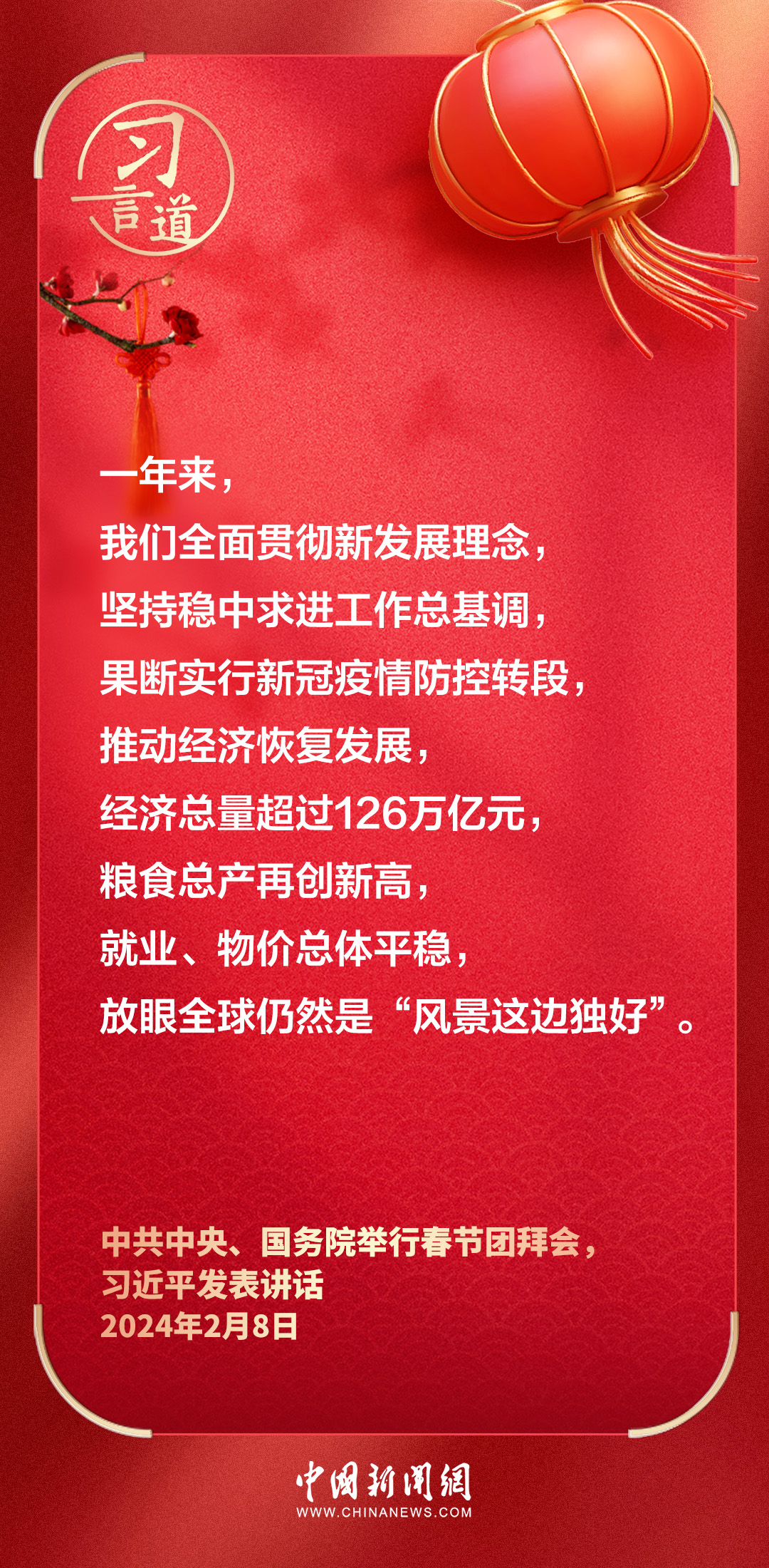 中共中央、國務(wù)院8日上午在人民大會堂舉行2024年春節(jié)團拜會。中共中央總書記、國家主席、中央軍委主席習(xí)近平發(fā)表講話——