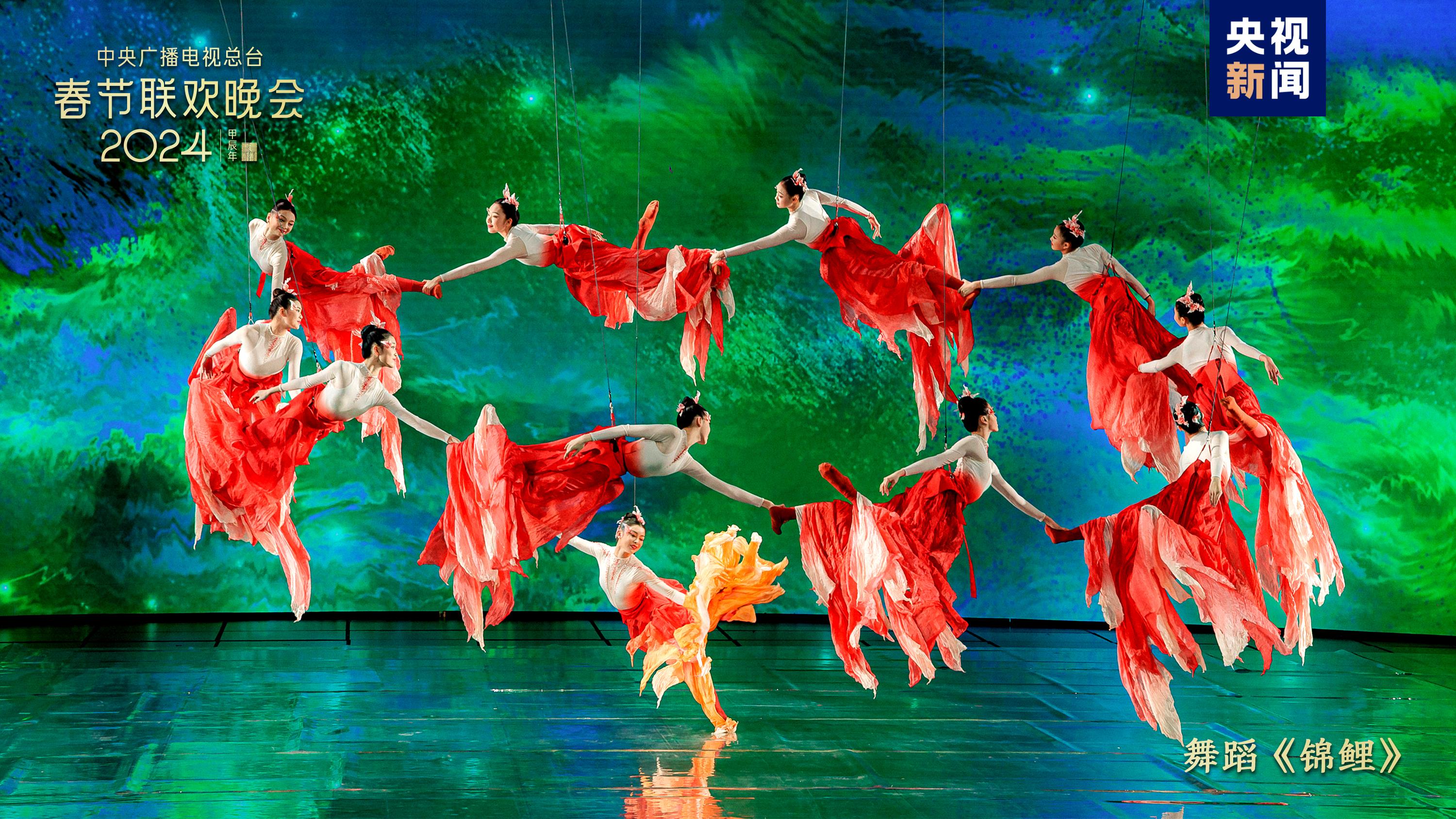 五彩紋樣燦若云霞,繪出錦繡中華。中國傳統(tǒng)紋樣創(chuàng)演秀《年錦》選取漢、唐、宋、明四個朝代富有代表性的紋樣,通過歌曲+虛擬合成技術(shù),織出一幅跨越千載的紋樣變遷圖卷。劉濤、劉詩詩、李沁、關(guān)曉彤身著傳統(tǒng)服飾,圖案繁盛、細節(jié)有序的華服之美隱藏著河清海晏、繁榮昌盛的美好祝福。舞蹈《錦鯉》融合AI、XR等技術(shù),舞者以飛天之姿化身水中錦鯉,點波流金,煥活舞臺上的一池春水,令人驚艷。