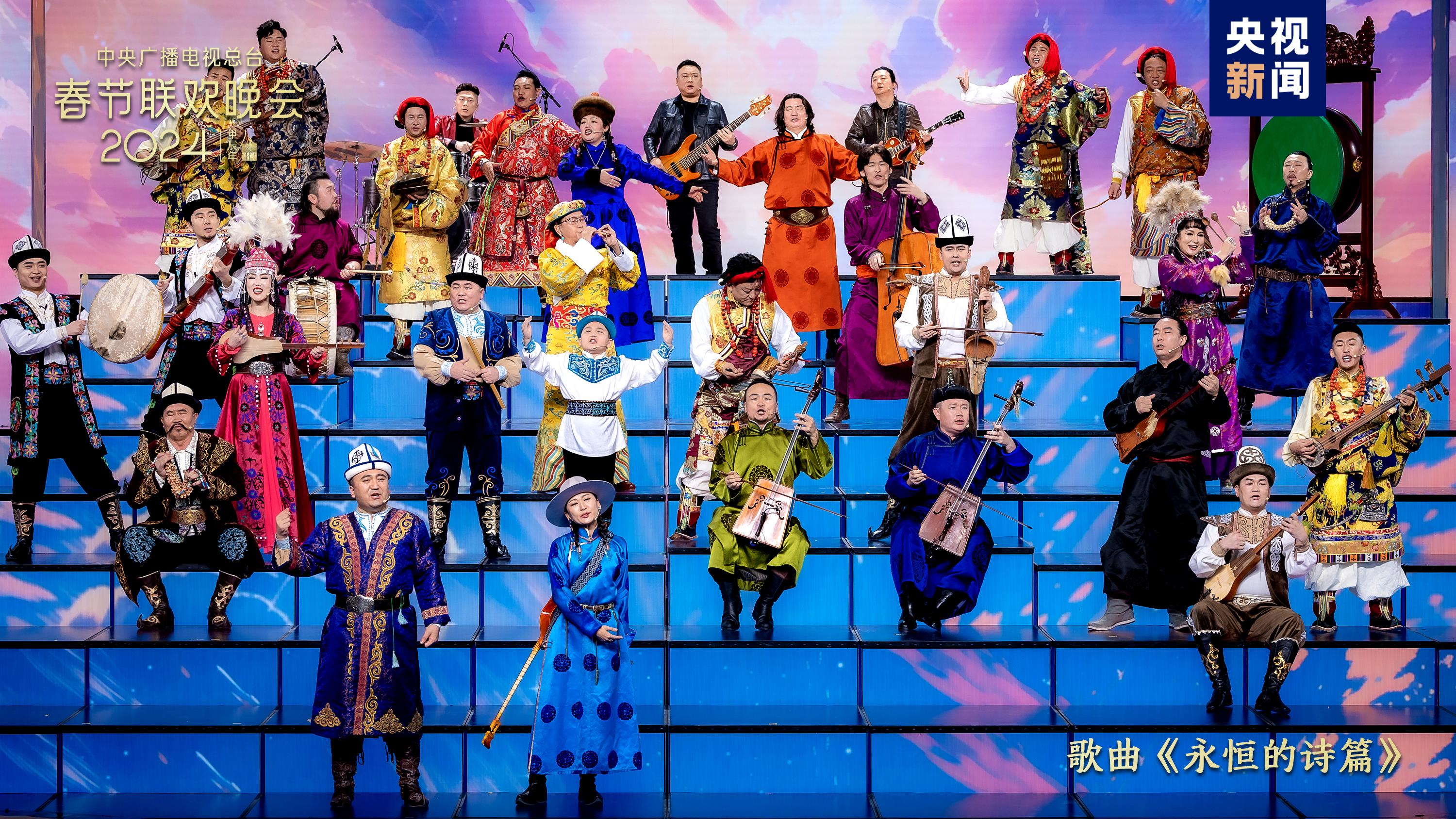 同根同源、同心同愿。歌曲《禮序》中,古巨基、蘇有朋、宋佳、麥嘉欣與來自海峽兩岸暨香港、澳門的小朋友們通過“禮”這一中華民族共通的文化符號,唱出攜手同心、共赴團圓的美好期許。《永恒的詩篇》傳唱柯爾克孜族、蒙古族、藏族的民族史詩,蒼勁有力,響徹廣袤大地,書寫遼闊土地上的生生不息。