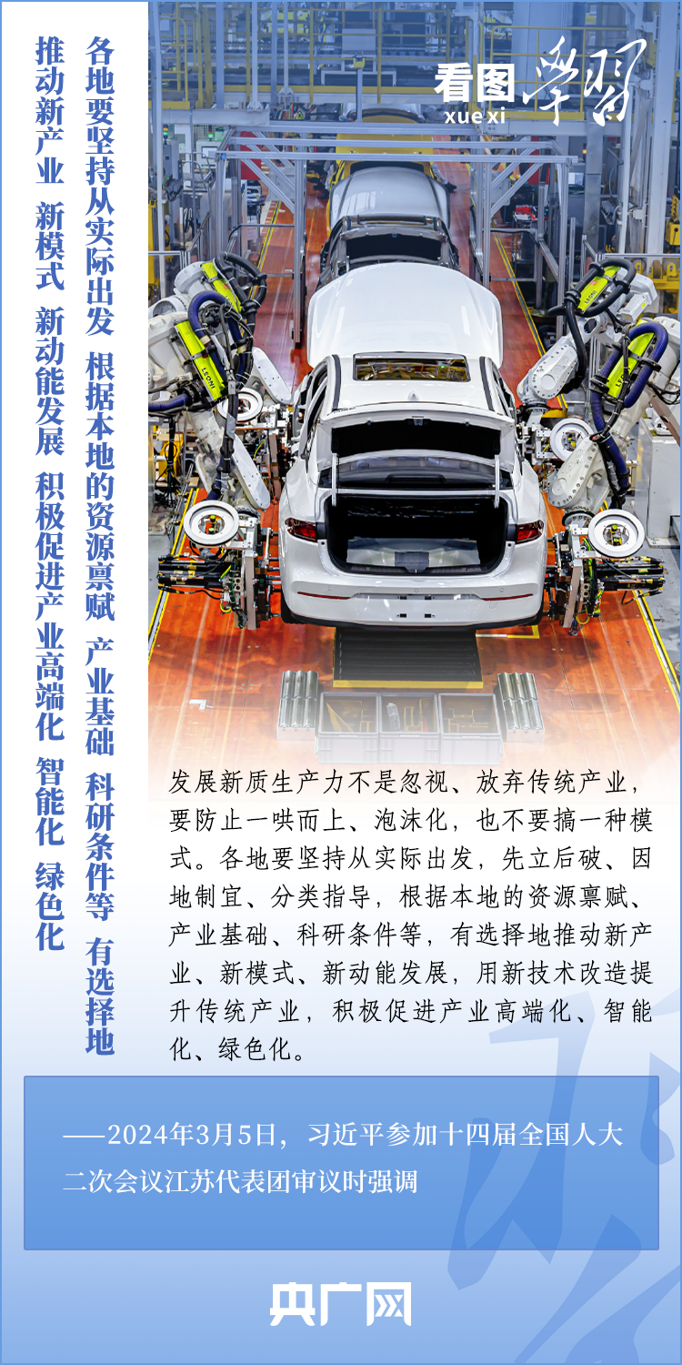 3月5日,十四屆全國人大二次會議正式開幕。5日下午,習(xí)近平總書記參加他所在的江蘇代表團(tuán)審議時強(qiáng)調(diào),要牢牢把握高質(zhì)量發(fā)展這個首要任務(wù),因地制宜發(fā)展新質(zhì)生產(chǎn)力。發(fā)展新質(zhì)生產(chǎn)力不是忽視、放棄傳統(tǒng)產(chǎn)業(yè),要防止一哄而上、泡沫化,也不要搞一種模式。一起來學(xué)習(xí)!