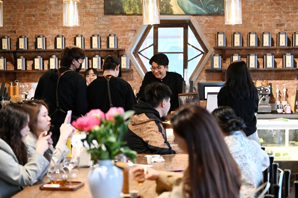在天津市和平區(qū)五大道樘院內(nèi),一家新開(kāi)業(yè)的茶飲店內(nèi)顧客絡(luò)繹不絕。新華社記者 李然 攝