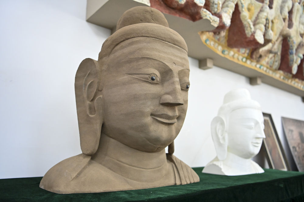 這是4月16日在云岡研究院數(shù)字化保護中心展廳拍攝的3D打印佛像模型。云岡研究院還通過高校合作、對外交流等方式