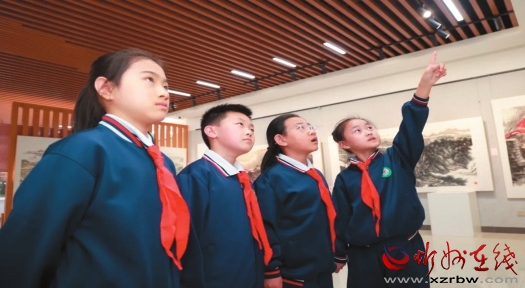 沿著“心靈之塔”臺階緩步而上,學生們駐足細讀,指尖摩挲著書中的文字,如同觸摸智慧的密碼。轉入書畫展廳,一幅幅水墨長卷鋪展開來,學生們與千年山水完成了一場跨越時空的對話。